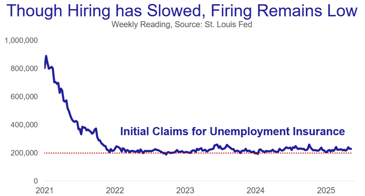 Tax Bill Looms. Congress is moving forward with its tax bill which will front load business investment to sterilize the negative impact of tariffs. The legislation incentivizes new business development through 100% expensing of factories, capital goods, and research and development (R&D). Also, more than $100 billion in incremental tax relief is delivered to consumers in 2026 through a higher standard deduction, child tax credit, small business deduction, and senior tax deduction. Combined, business and consumer aid should boost GDP by 1%, helping to sterilize the negative impact of tariffs (which have come down meaningfully on their own). The legislation will also privatize the student loan system, remove $600 billion of renewable energy spending over 10 years, and slow the growth of Medicaid spending.